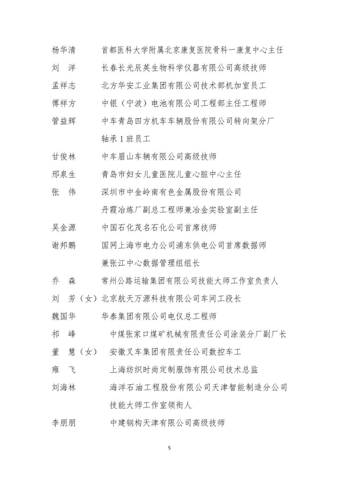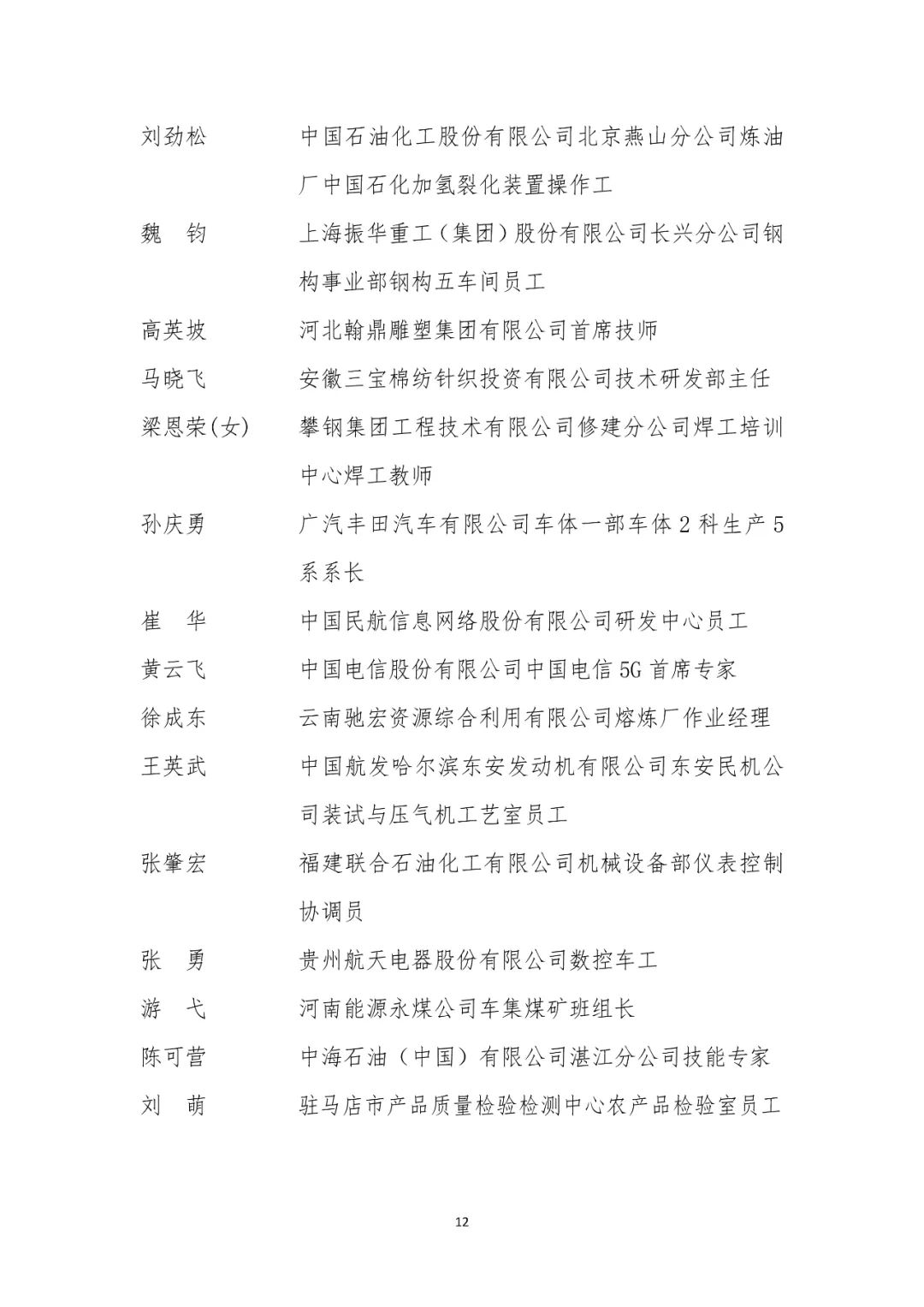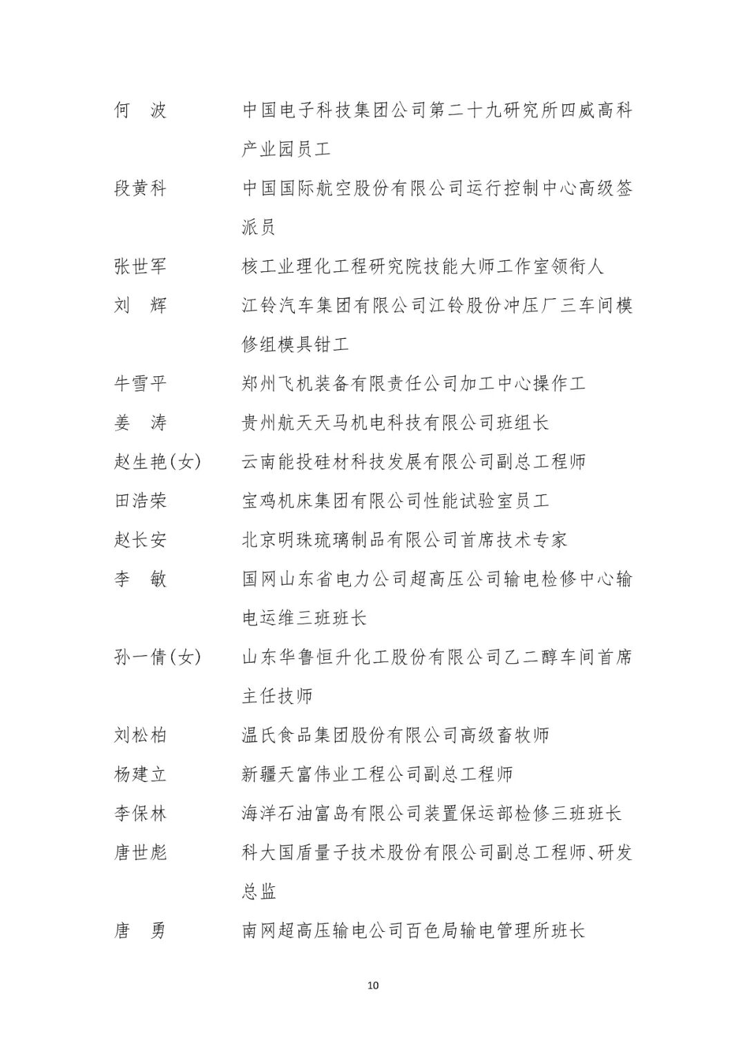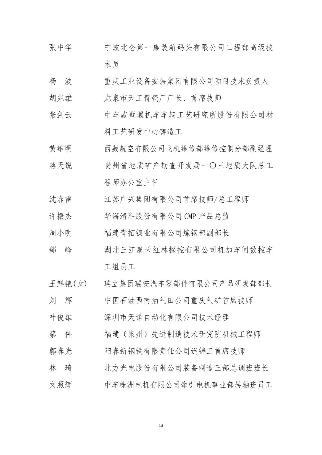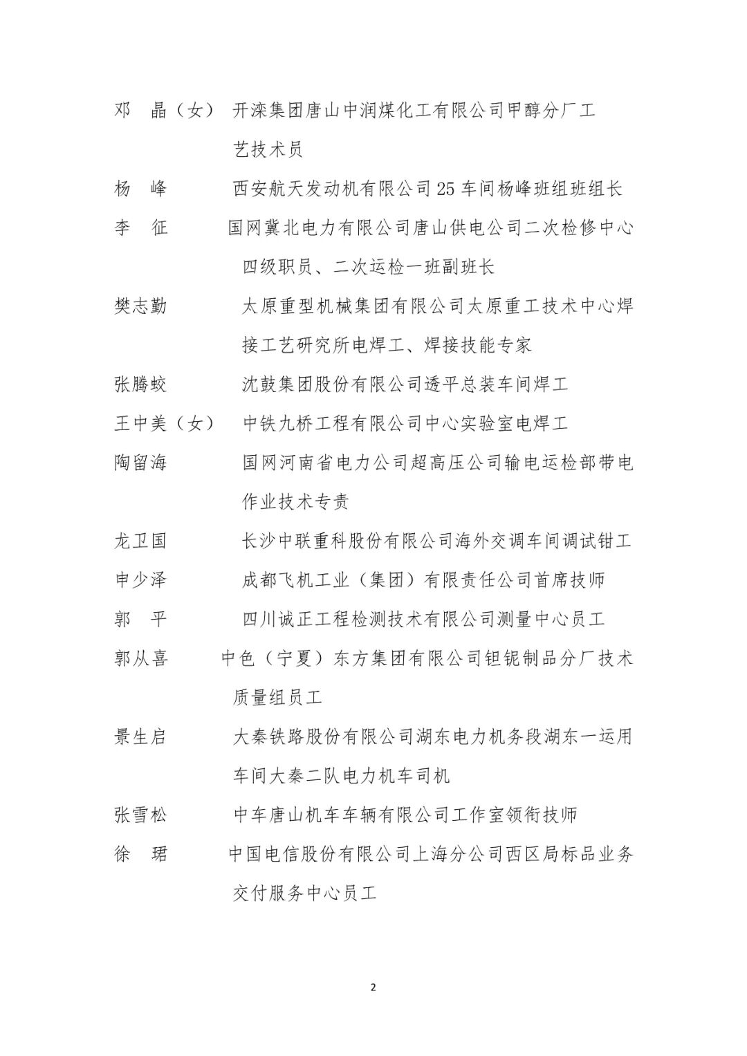 大国工匠人才培育工程2024年拟入选培育对象名单
