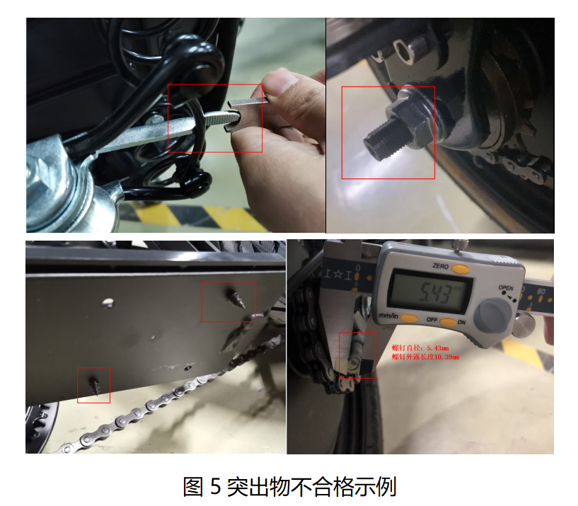 ①检查电动自行车外观上是否有碰伤、刮痕、擦挂以及有明显的不被允许的突出物;