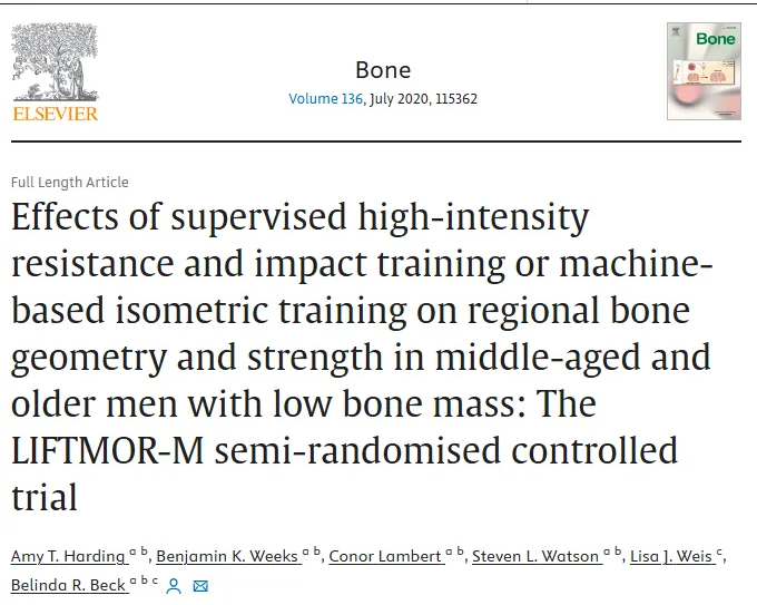 最终研究发现:8 个月后高强度力量训练组的人与另外两组相比,股骨内侧的颈皮质厚度明显增加,胫骨远端小梁区的骨密度保持不变,而实验对照组减少了 1.6%。