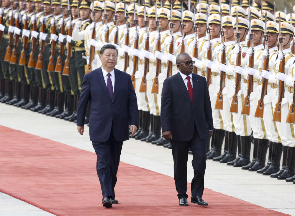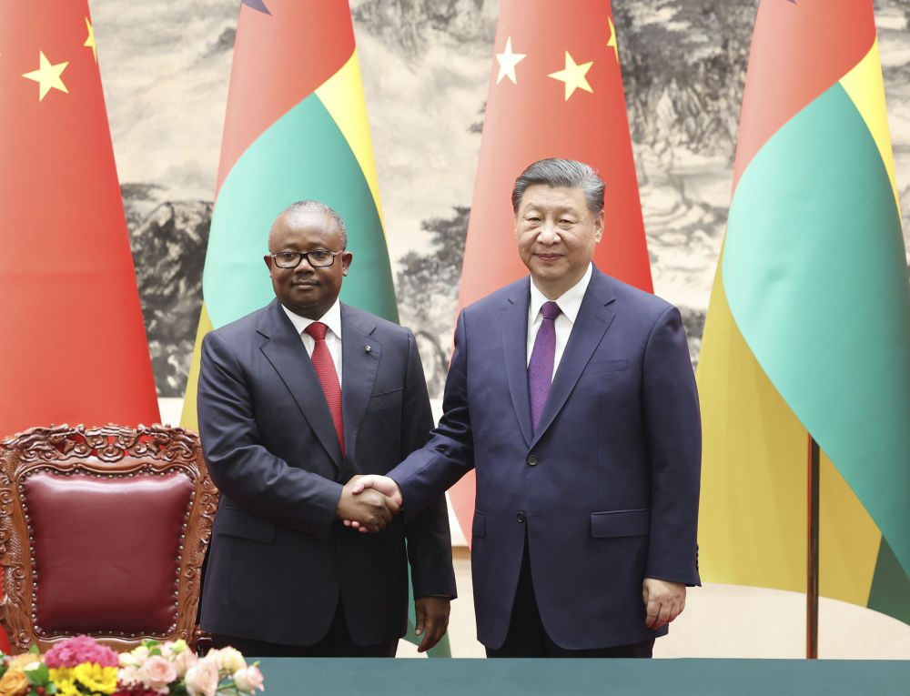 7月10日下午,国家主席习近平在北京人民大会堂同来华进行国事访问的几内亚比绍总统恩巴洛举行会谈。