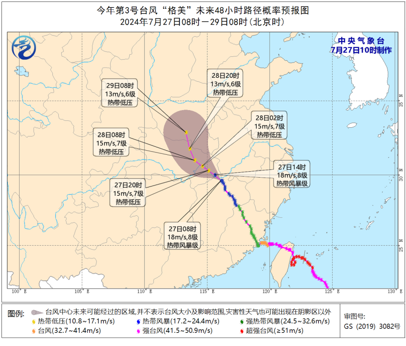 今天(27日)10时,中央气象台继续发布台风蓝色预警:今天9时,台风“格美”的中心位于江西省九江市境内,预计“格美”将以每小时10—15公里的速度向西北方向移动,强度逐渐减弱。