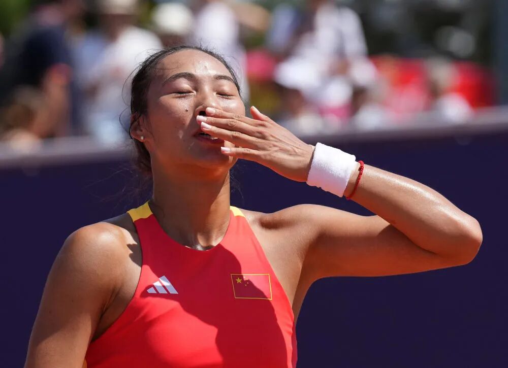 △ 7月29日,郑钦文在赛后向观众致意。图源新华社