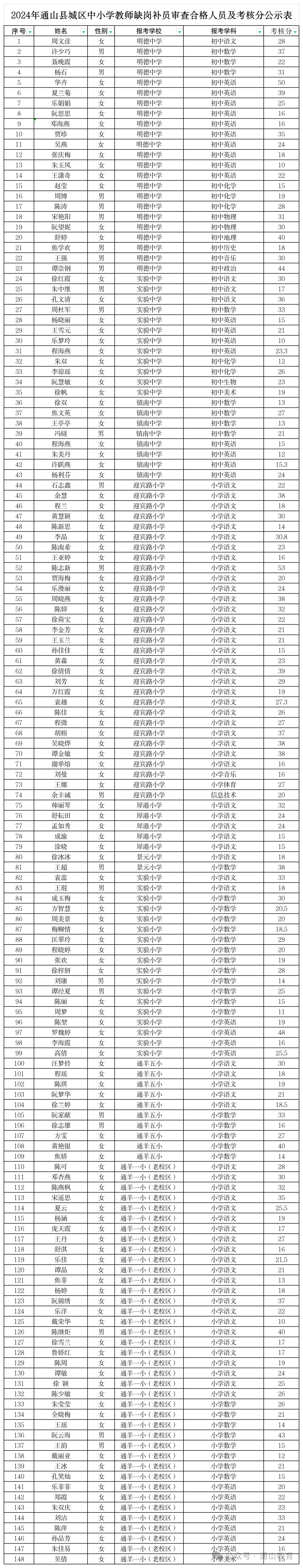 附件:2024年通山县城区中小学教师缺岗补员审查合格人员及考核分公示表