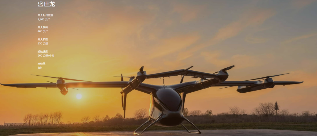 “盛世龙”eVTOL电动垂直起降航空器,搭载纯电动力,垂直起飞后,在空中转换为固定翼飞行模式水平巡航。峰飞航空表示,该型号具有直升机灵活起降的特点,也能大幅节省地面交通时间,但与传统直升机相比,噪声低、绿色环保。