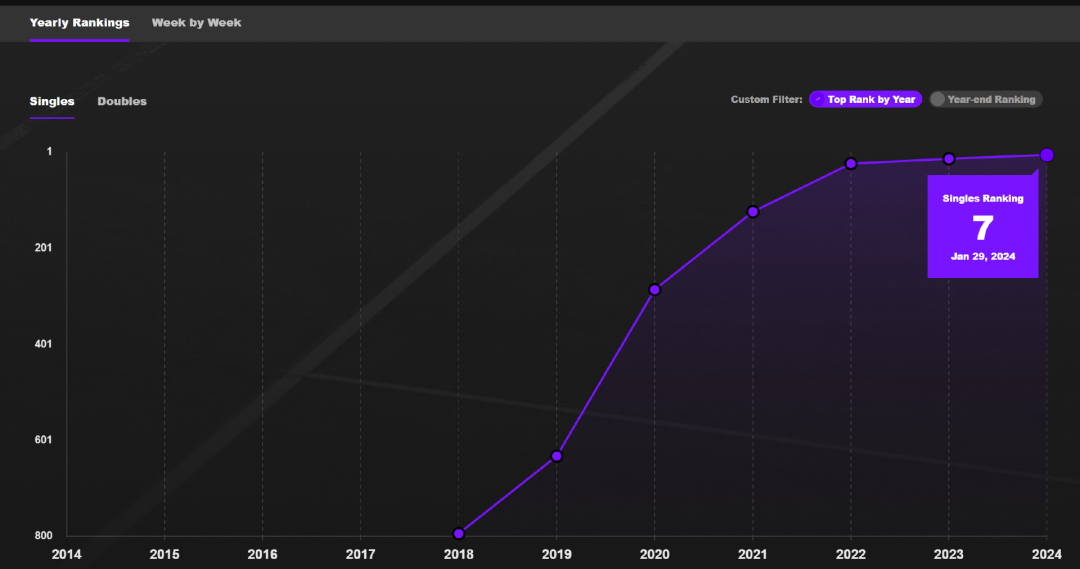 △郑钦文历年最高世界排名(图/WTA官网)