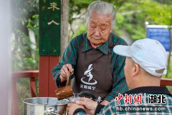 94岁高龄的徐桂梅是通山县厦铺镇藕塘村村民,她从60岁开始,便坚持每天在家煮好茶水再送到村口路边,给过往行人送上一口甘爽,解决了大山里赶路人口干舌燥、无水解渴的实际困难。徐桂梅30多年的坚守感动了无数人,她被大家亲切地称为“凉茶奶奶”。