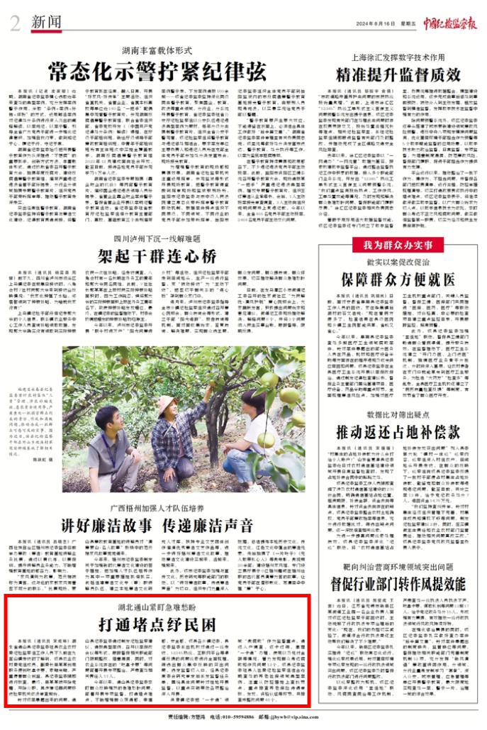 今年以来,通山县纪委监委紧盯群众反映强烈的急难愁盼问题,部署开展专项监督,打通堵点难点,不断增强群众获得感、幸福感、安全感。该县各乡镇纪委、县纪委监委派出机构对通过一线走访、12345热线、互联网平台等渠道反馈的问题线索进行全面梳理,筛选出群众集中反映的突出问题,选定监督切入口。经县纪委常委会研究审定后派发监督任务单,围绕具体问题针对性地开展监督,以重点突破带动各项整治深入开展。