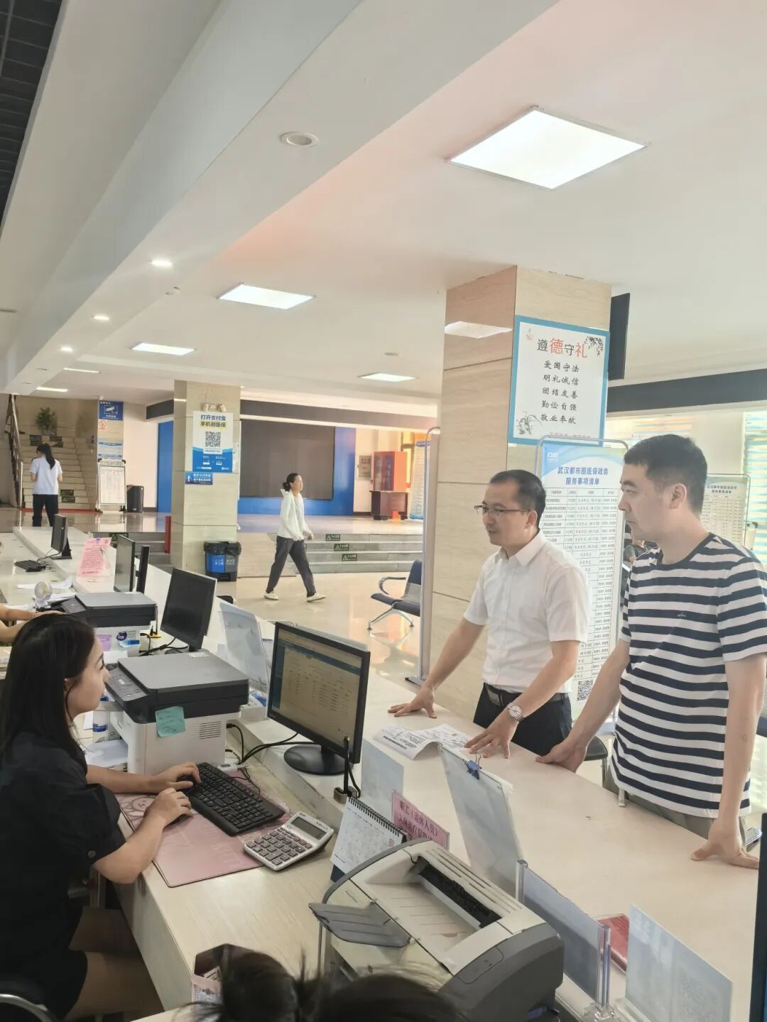 在医保办事窗口,余良文对办理单位职工死亡停保和退费以及慢性病申报与报销等业务,从咨询政策、准备材料到事项办结,全程参与并详细了解了医保业务的相关政策、办理材料、办理时限、经办流程及服务评价等环节,实地体验了医保经办人员的办理服务。