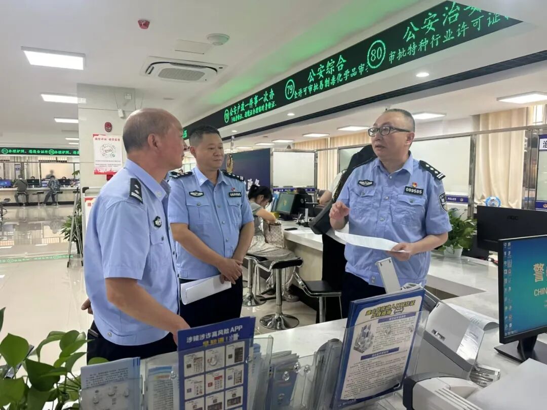 8月21日上午,通山县公安局党委副书记、政委毛劲松、党委委员、副政委程景梅、政务服务和大数据管理局副局长朱早腾等领导深入行政服务中心公安服务窗口,开展“局长走流程”活动。