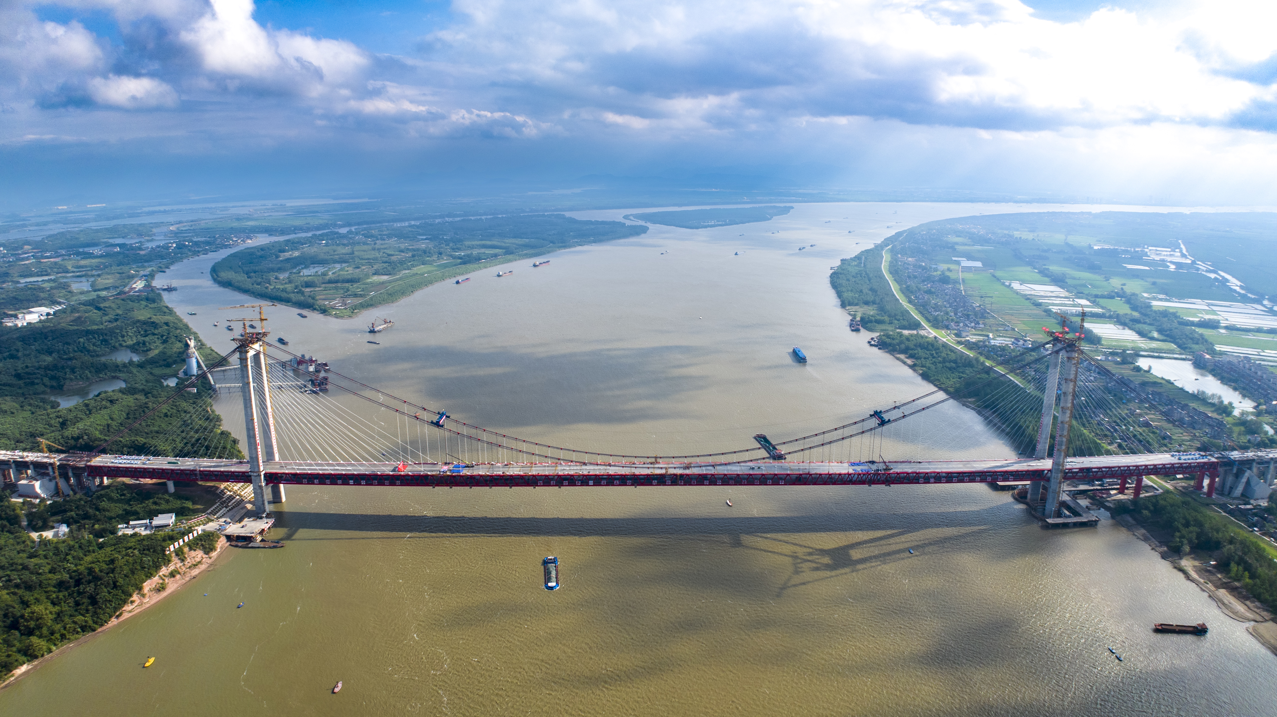 世界首座双层斜拉—悬索协作体系大桥顺利合龙 2024-08-28 09:19 0 G3铜陵长江公铁大桥主桥8月27日顺利合龙,标志着世界首座双层斜拉—悬索协作体系大桥主体完工。大桥路线全长11.88公里,主跨988米,上层桥面布置为上下6车道高速公路,下层桥面布置为上下4线铁路。 来源:央视新闻