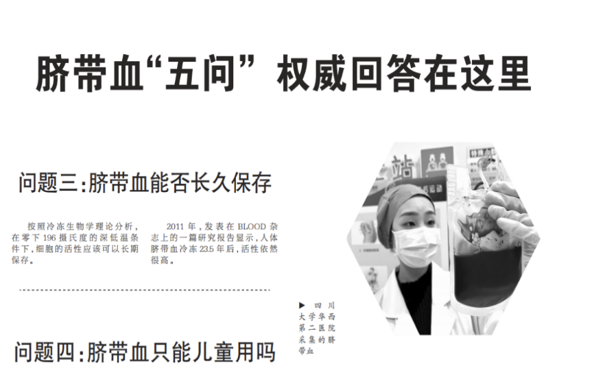 健康报曾刊登过一篇文章:《脐带血“五问”,权威回答在这里》,给这些大众关心的问题做出了解答。
