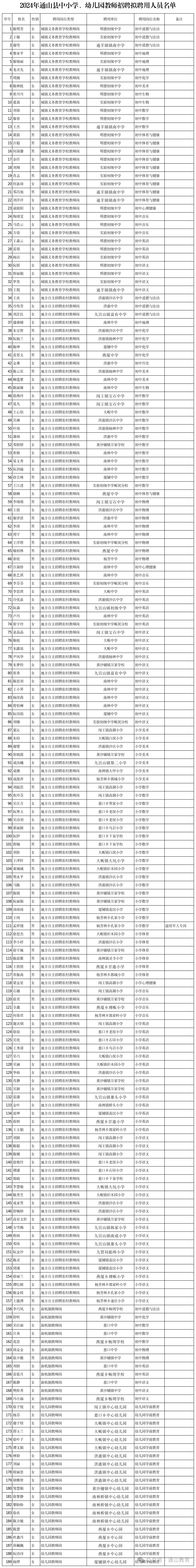 附件:2024年通山县中小学、幼儿园教师招聘拟聘用人员名单