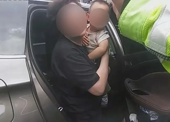紧急情况下,闻讯赶来的几位交警果断砸窗救人,孩子最终顺利脱困。