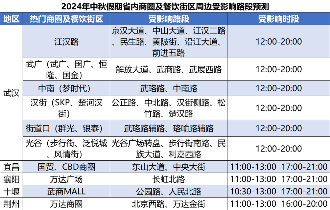 中秋期间民俗大型活动增多,将吸引大量游客和市民参与,举办地周边道路交通流量将显著增加,部分道路可能需采取临时交通管控措施,导致周边道路通行能力下降,极易引发交通拥堵。