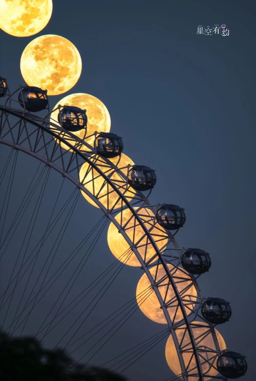 星空摄影师魏伟2023年9月29日(农历八月十五)在福建福州拍摄的中秋月(多张叠加),也是一轮“超级月亮”。(星联CSVA供图)