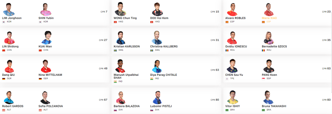 混合双打:正赛24组确认参赛。