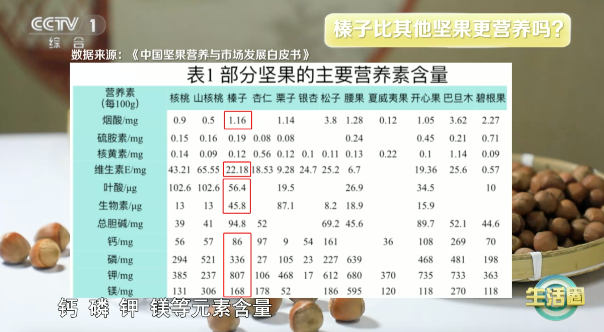 总体来说,坚果中的营养素含量都比较丰富,相对于其他坚果,榛子可能有几种营养素的含量相对较高。
