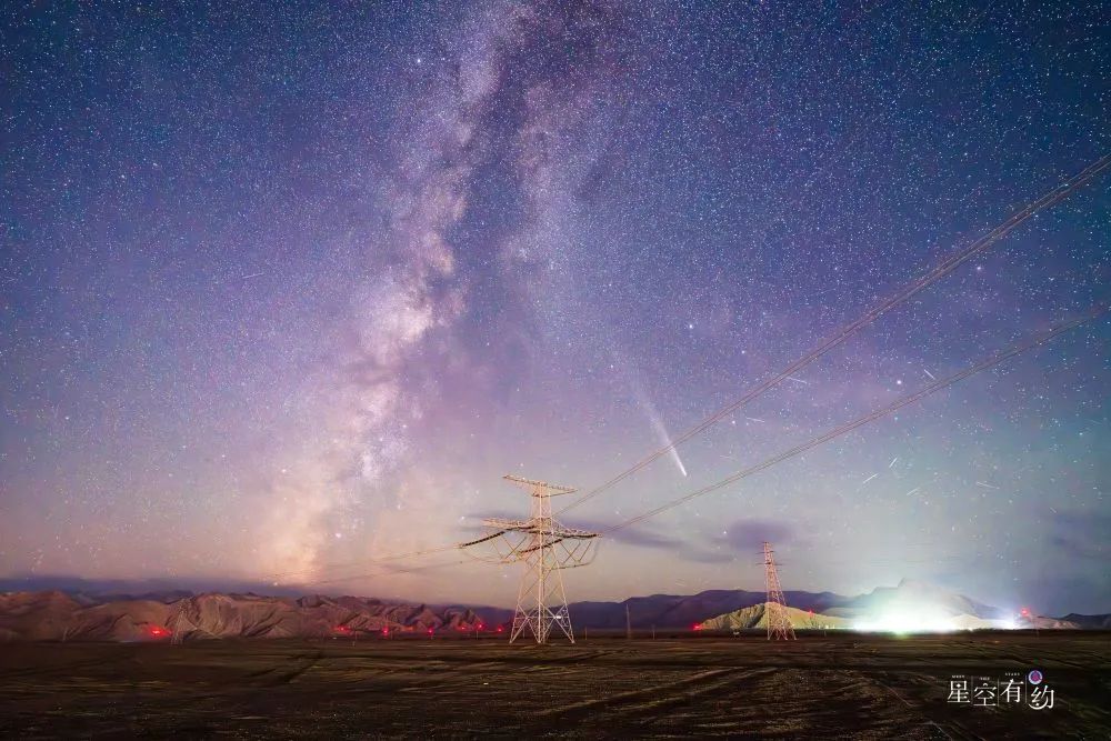 10月22日在青海格尔木昆仑山门拍摄的紫金山-阿特拉斯彗星与银河同框。(钟奕摄)