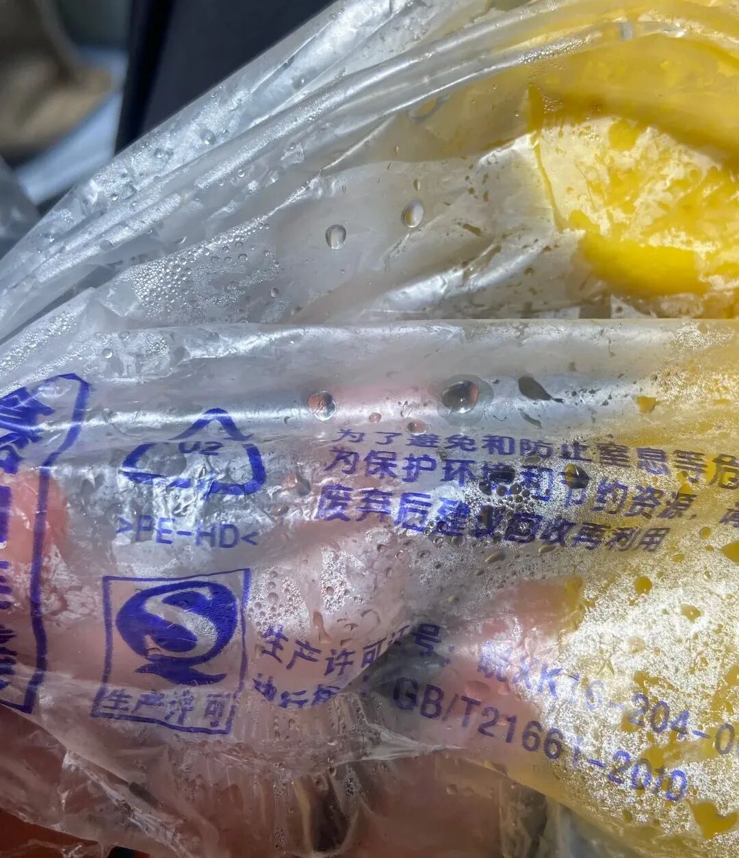 一般超市使用的袋子就属于高密度的PE塑料袋,但是菜市场、早点摊使用的都是低密度的PE塑料袋,但这种袋子的耐热性不高,有析出“带毒单体乙烯”的风险。