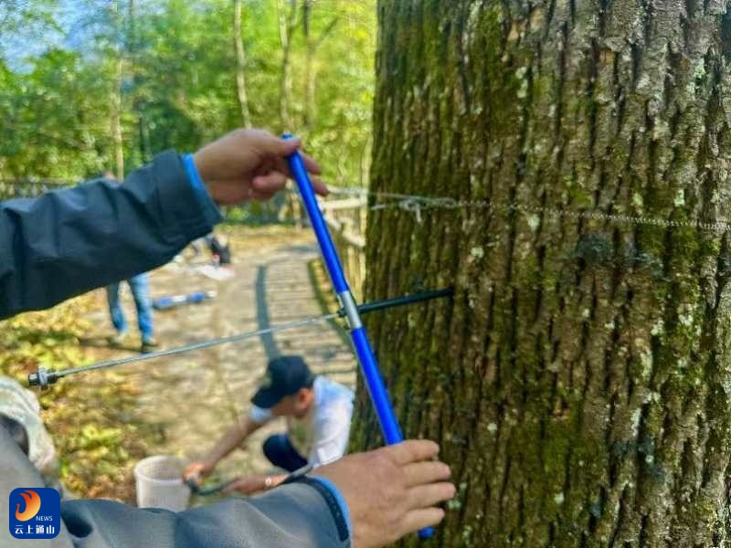 现场,有人手持生长锥,在红椿树干上熟练地选取合适位置后轻轻钻入,旁边的职工拿着布袋,准备接住即将取出的样本;有人伸出高枝剪,剪下挂满果实的树枝,其他人则用塑料网袋接住;还有人拿着标签和铅笔,标记采集的时间、地点、树木编号等信息,这些信息是红椿的生命密码。