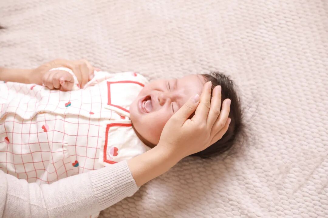 宝宝肠绞痛时非常难受,可能出现大声哭闹、面色潮红、翻滚、交替蹬腿、腹部紧张的表现。