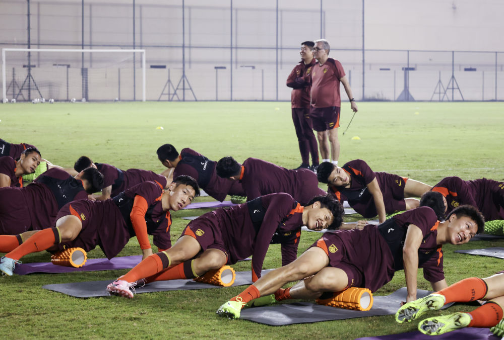 11月12日,中国国家男子足球队成员在巴林进行赛前训练,备战14日与巴林队的2026年世界杯亚洲区预选赛18强赛C组第五轮比赛。新华社记者 王海洲 摄