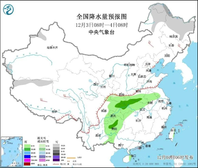 除此之外,2-5日,西北地区东南部、西南地区东部、黄淮南部及以南地区有小到中雨,陕西南部、甘肃东南部、河南西部、湖北西北部等地部分地区有雨夹雪或雪。