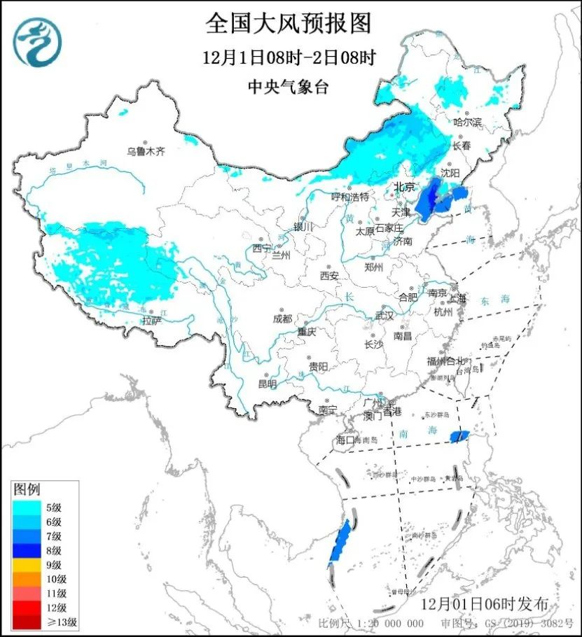 其中今天,内蒙古大部、山西北部、河北北部、北京北部、辽宁西部、吉林西部等地气温将下降4~8℃,部分地区降温幅度超过10℃。另外,西藏北部和西部、内蒙古中部、河北北部、黑龙江西部、吉林西部、辽宁西部等地将有5~6级、阵风7~8级的大风;渤海、渤海海峡、黄海北部偏北海域有7~8级、阵风9级的大风。