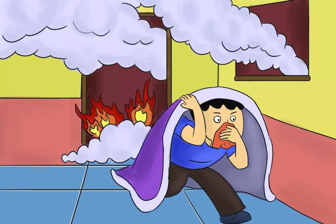 ►火灾中对人威胁最大的危险是有毒烟雾。可用毛巾、口罩打湿后掩口蒙鼻,防止烟雾中毒、窒息。压低身姿贴近地面匍匐撤离。