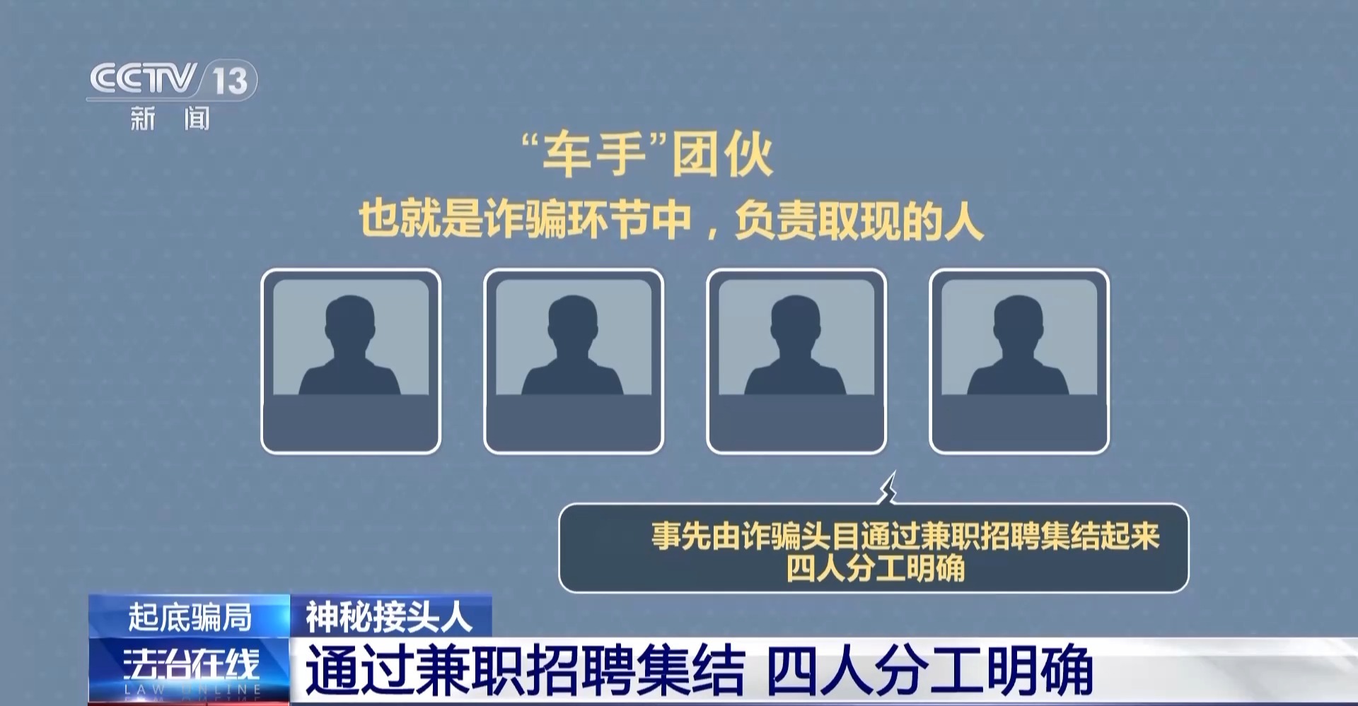 据犯罪嫌疑人交代,他们都是所谓“车手”,也就是诈骗环节中,负责取现的人。他们事先由诈骗头目通过兼职招聘集结起来,四人分工明确,分为领头、开车、取钱、望风。在诈骗姜先生的当天,他们就取了四次黄金和现金。