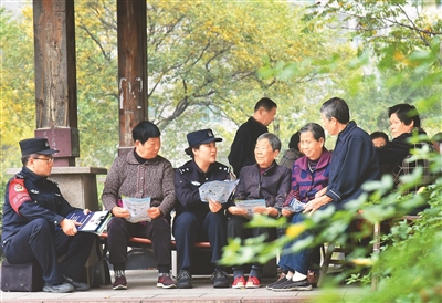 安徽省马鞍山市当涂县公安局年陡派出所民警向老年人开展防范养老诈骗宣传,宣传个人养老金相关知识,提升老年人群体防范意识。 卫学超摄(人民视觉)