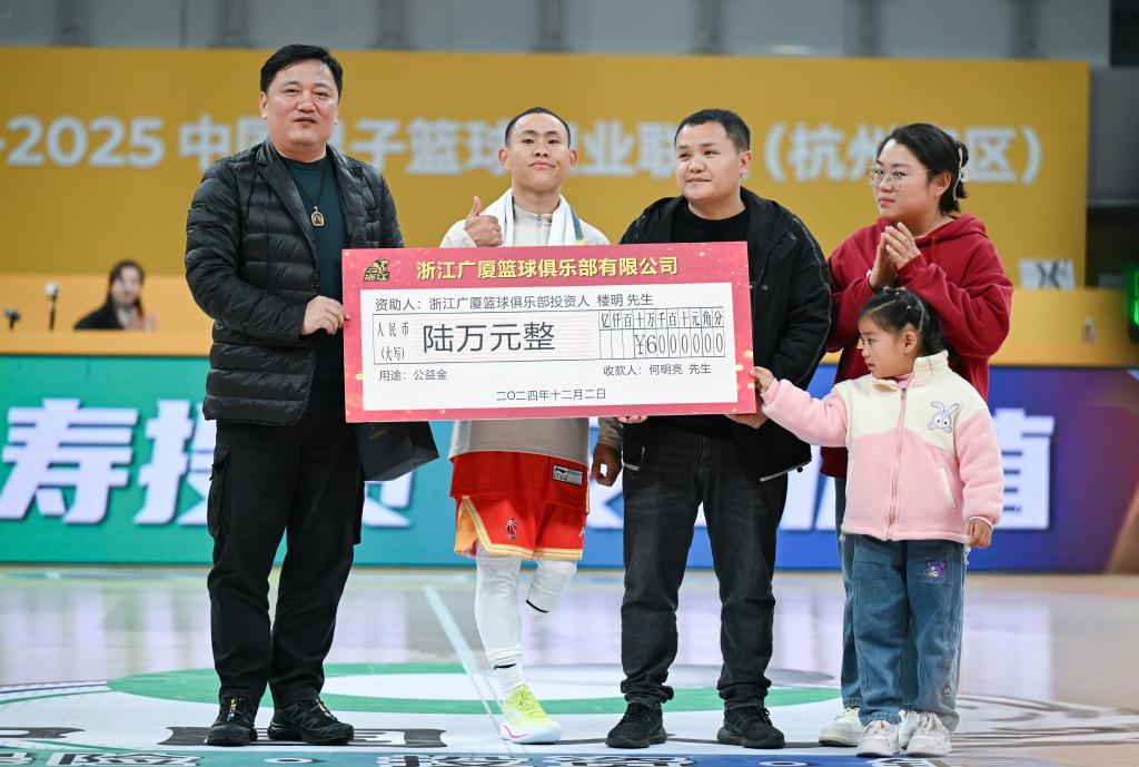 中场休息时,浙江广厦向何明亮捐助了6万元公益基金,用于假肢定制。收到这份特别的礼物后,走下赛场的何明亮迫不及待地通过哥哥告诉大家,他很感激,也很满足。