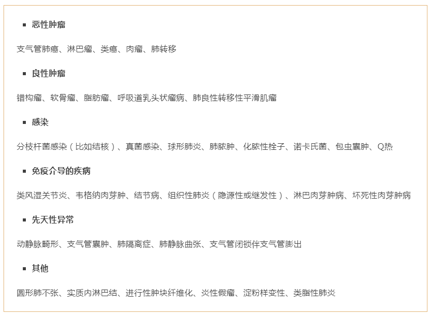 由于胸部CT越来越精确,越来越多的小结节被扫描发现,而这些结节可能是以下情况: