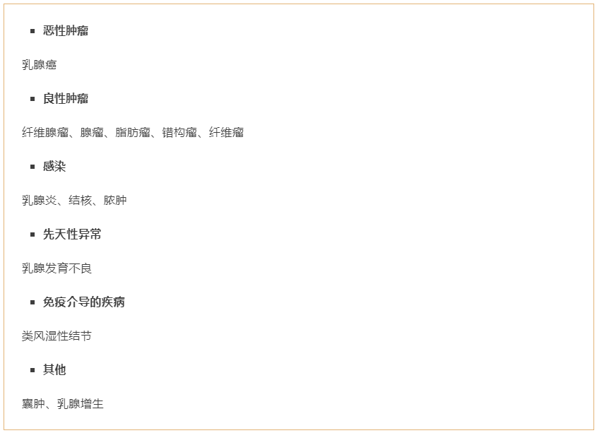 乳腺结节也是非常常见的,同样代表多种情况: