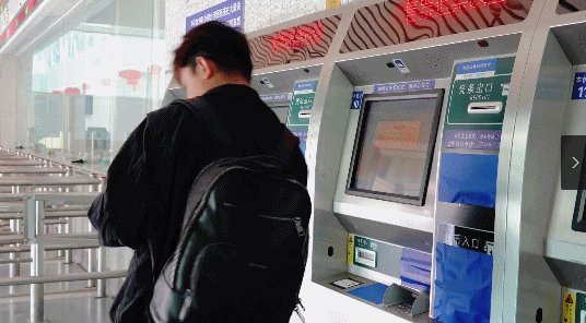在自助售票机上操作时