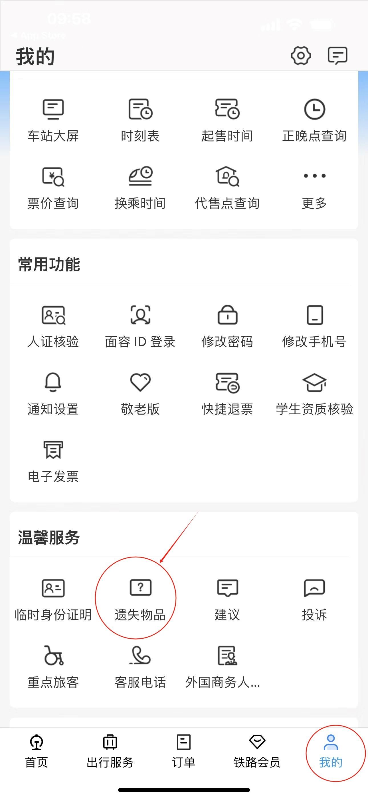 在【我的】中选择【遗失物品】