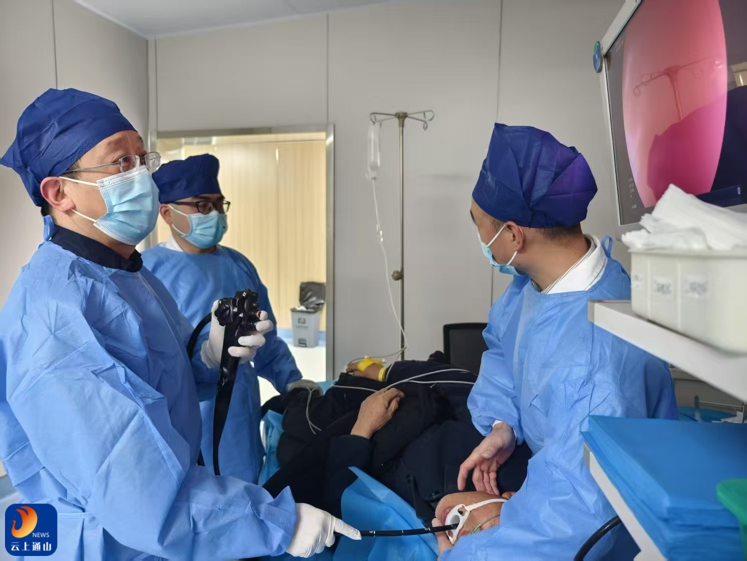 云上通山报道:(通讯员 宋亚琼 焦艳)1月31日,农历大年初三晚8时许,一阵嘈杂声打破了通山县人民医院内镜中心的宁静,一位年近八旬的老人家在家人的搀扶下来到了内镜中心。老人家痛苦面容,不时吐出带血丝的口水。