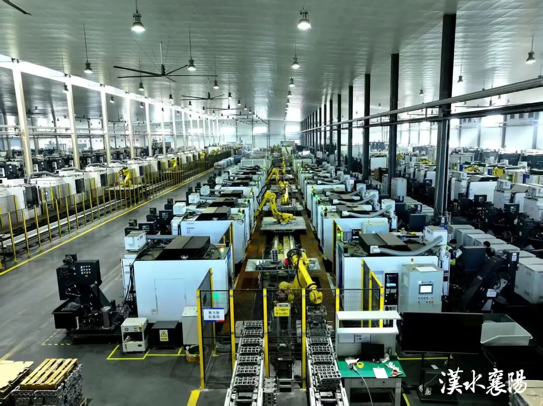 襄阳长源朗弘科技有限公司冲压、压铸、铸造等各条生产线全速开动自动化设备高速运转的轰鸣声不绝于耳冲压车间两条全自动生产线2名工人每150秒即可产出一件缸体合格率高达95%以上