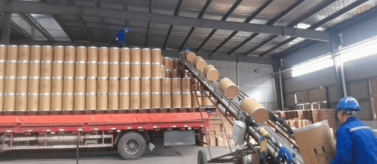 在公司磷酸盐生产车间,各条生产线火力全开,工人们忙碌的身影在车间内穿梭,配合着机器完成产品的加工、包装、转运等工序。
