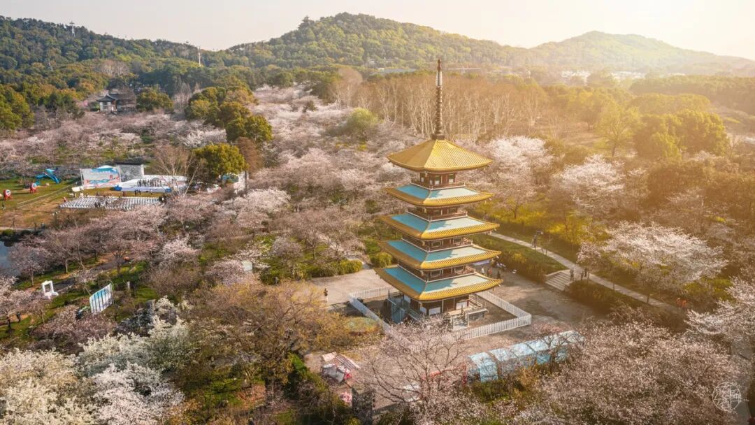 作为世界三大赏樱胜地之一的东湖樱花园,栽种了万余株樱花树,包含染井吉野、大岛、关山、八重红枝垂、雨晴垂枝等80多个优良樱花品种和全国罕见的郁金、御衣黄等绿樱品种。