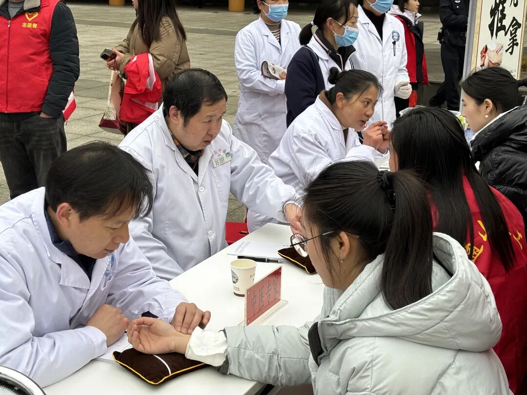 尽管春寒料峭,仍有100余名群众现场体验中医药特色服务。