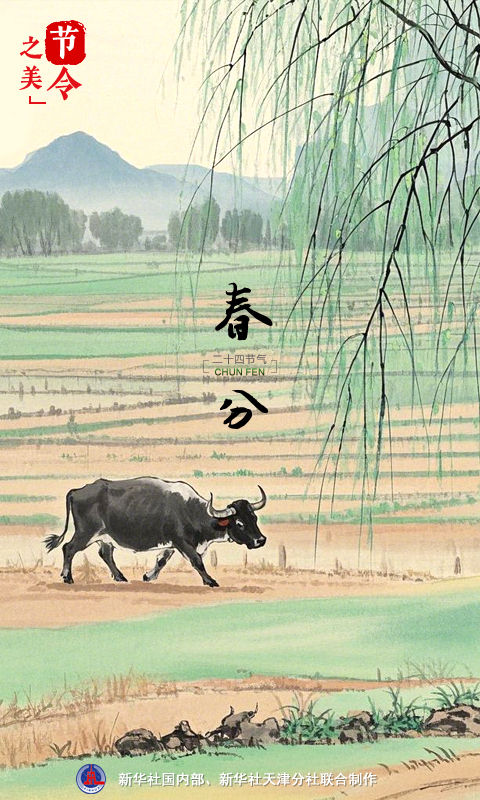 民间流传有“惊蛰到春分,下种莫放松”“春分麦起身,一刻值千金”等谚语。古人认为,春分时节,“地气已贯通”,是适合播种的时节。“‘野田黄雀自为群,山叟相过话旧闻。夜半饭牛呼妇起,明朝种树是春分。’清代诗人宋琬针对春分的描写,描绘出农家的忙碌与希望,透着乡土气息和人情意味。”王来华说。
