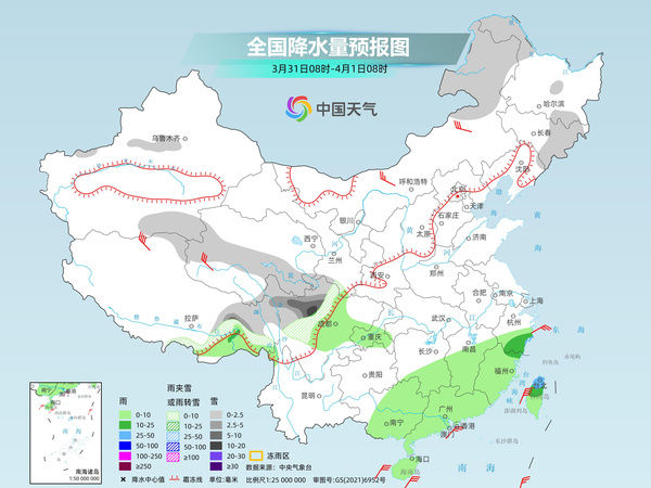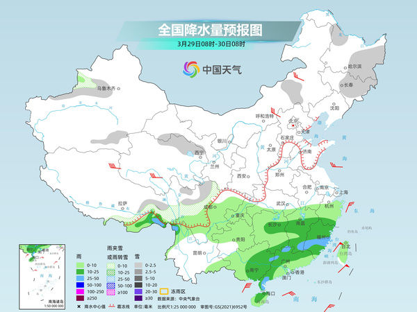 今起三天(3月29日至31日),南方大范围阴雨持续,华南沿海等地可能伴有强对流天气。同时,本周末江南、华南气温还将下跌,多地最高气温仅有10℃左右,伴随着降雨,湿冷感十足。
