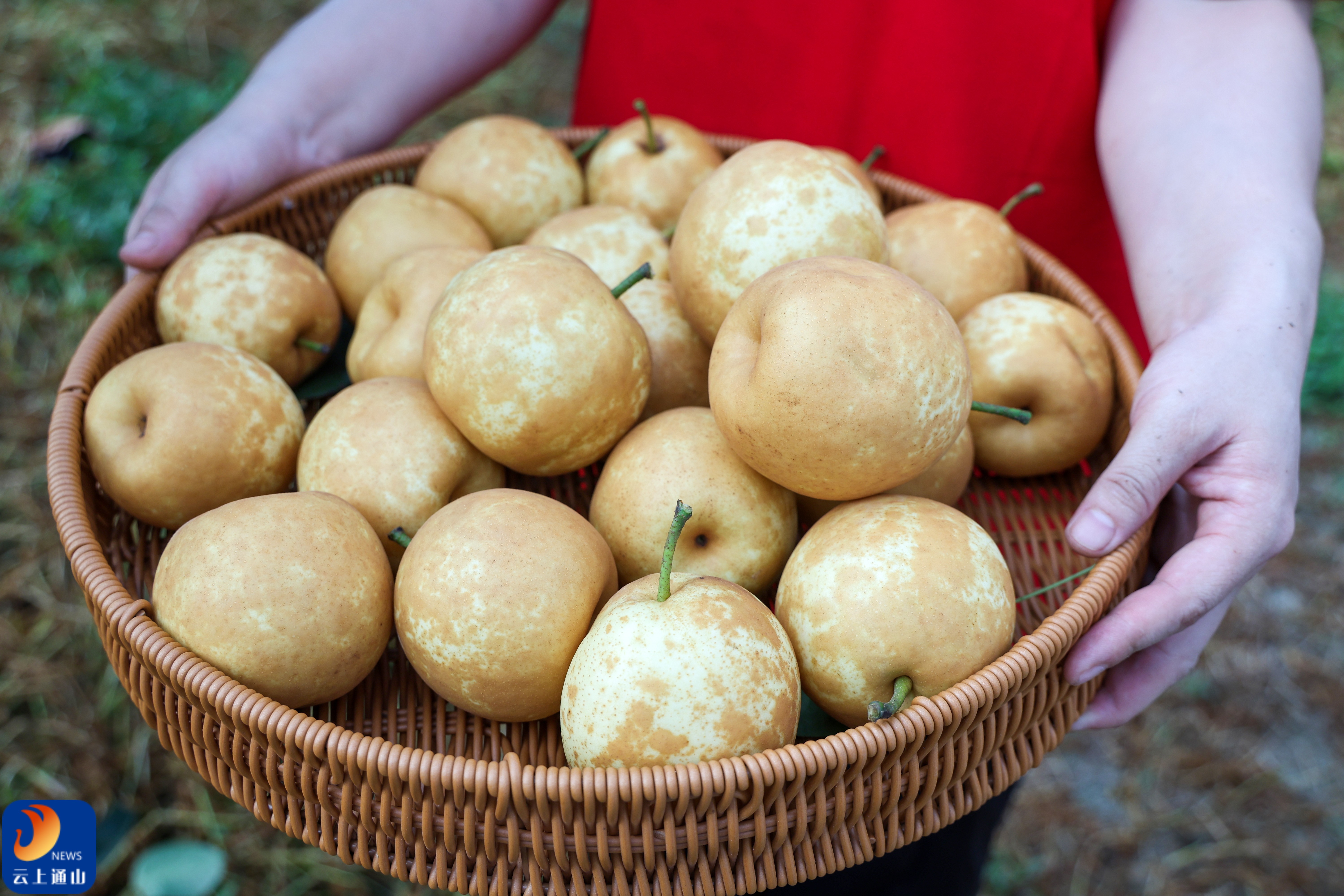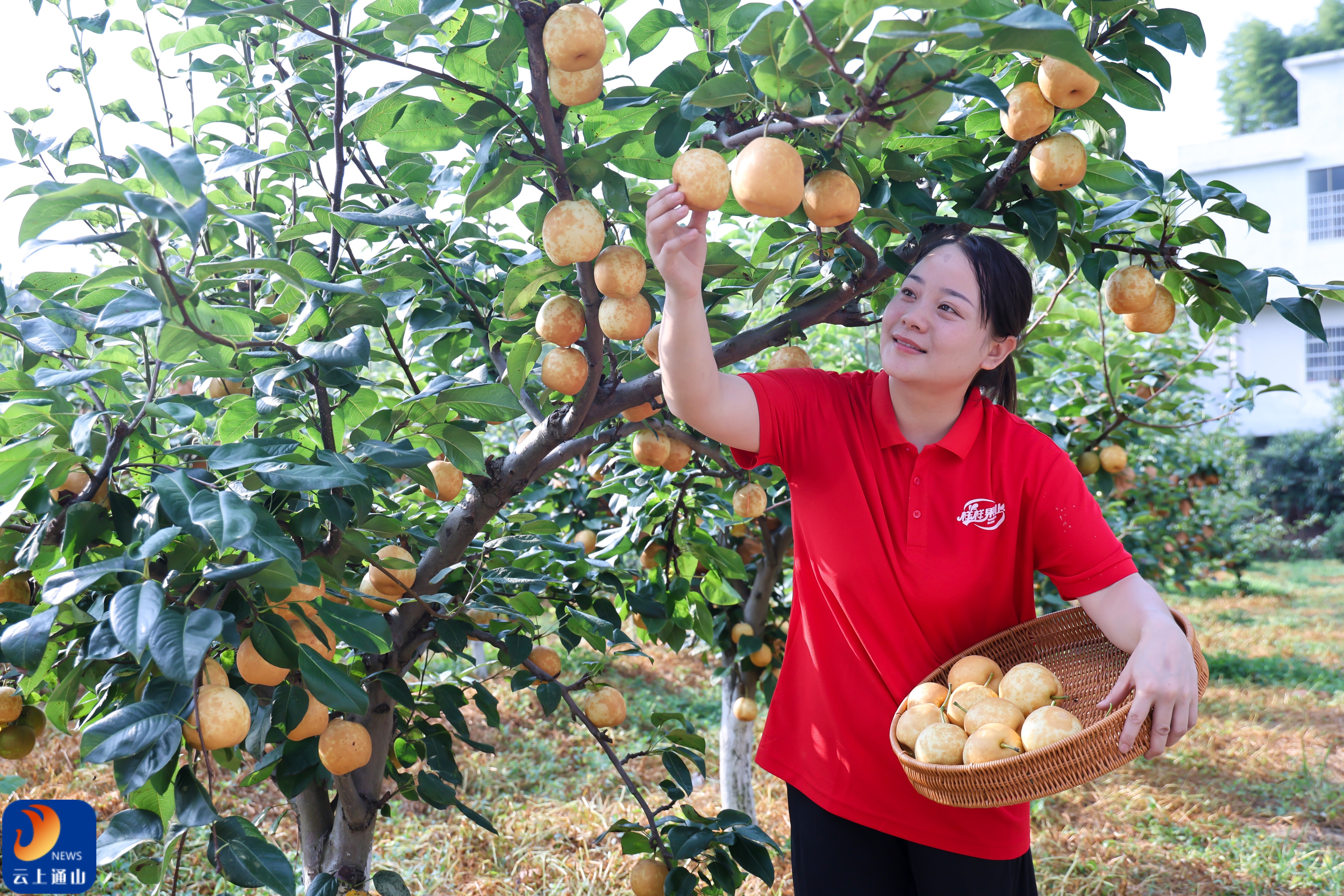 ▲广袤的梨子园掀起金色浪潮,宣告丰收的辉煌胜利。