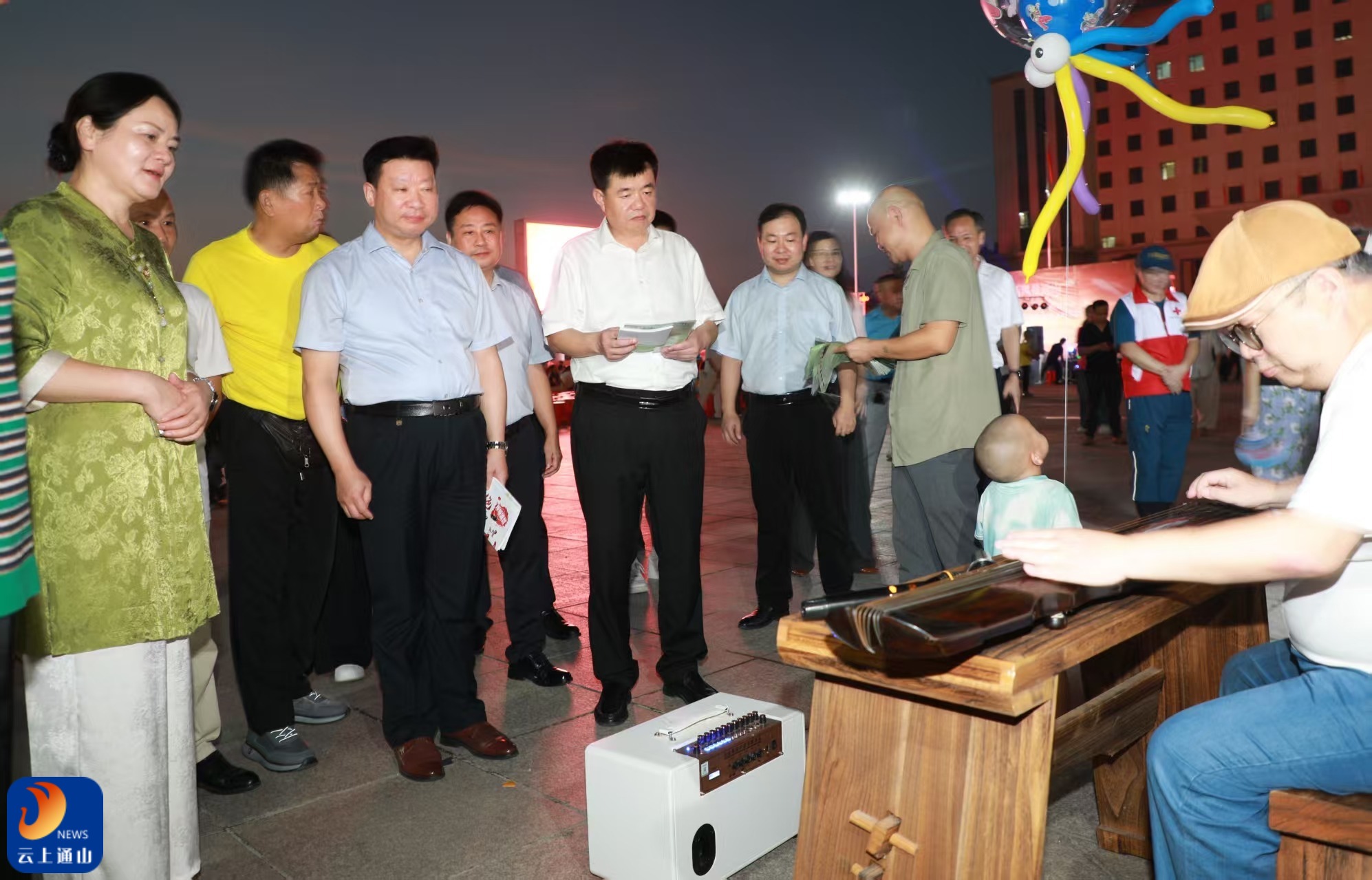 文明实践夜市摊位区里,民生服务、理论政策宣讲、文化文艺体验等六大类服务火热开展,免费理发、健康义诊、中秋花灯制作等项目吸引众多市民参与,杨序元、吴涛一行与摊主、市民亲切交流,询问服务开展情况与市民体验感受。在舞台演艺区,“新串堂班”各民间文艺团队带来山歌山鼓、戏曲、小品情景剧等移风易俗原创节目,讴歌新时代通山新风貌,杨序元、吴涛一行驻足观看,不时为精彩表演鼓掌。吴涛表示,此类活动既贴合群众需求,又能传递文明新风,要持续以群众喜闻乐见的形式,把惠民服务、文化体验送到大家身边。