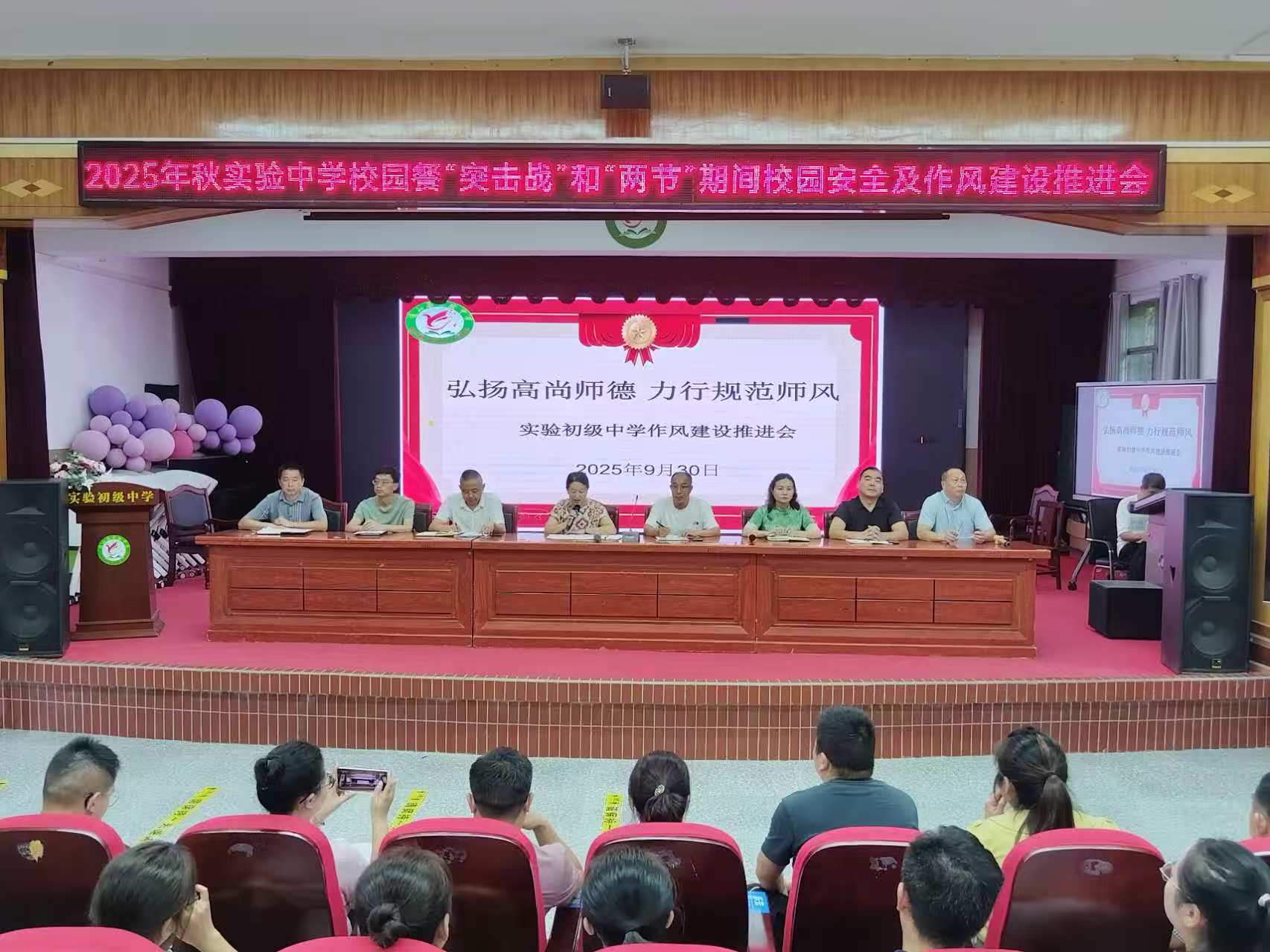 云上通山报道:(通讯员 黄细华)9月30日,县实验中学召开2025年秋季校园食品安全攻坚暨“两节”(国庆、中秋)期间校园安全及作风建设推进会,全校教职工参加会议。会议重点部署了2025年秋学期师德师风建设、校园食品安全专项整治和校园安全管理工作,确保校园安全稳定,推动学校高质量发展。
