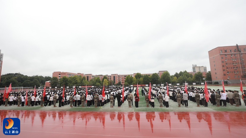 军训首日,启动仪式在学校运动场庄重举行。伴随嘹亮的国歌声,参训师生肃立行注目礼,爱国热忱在校园中激荡。