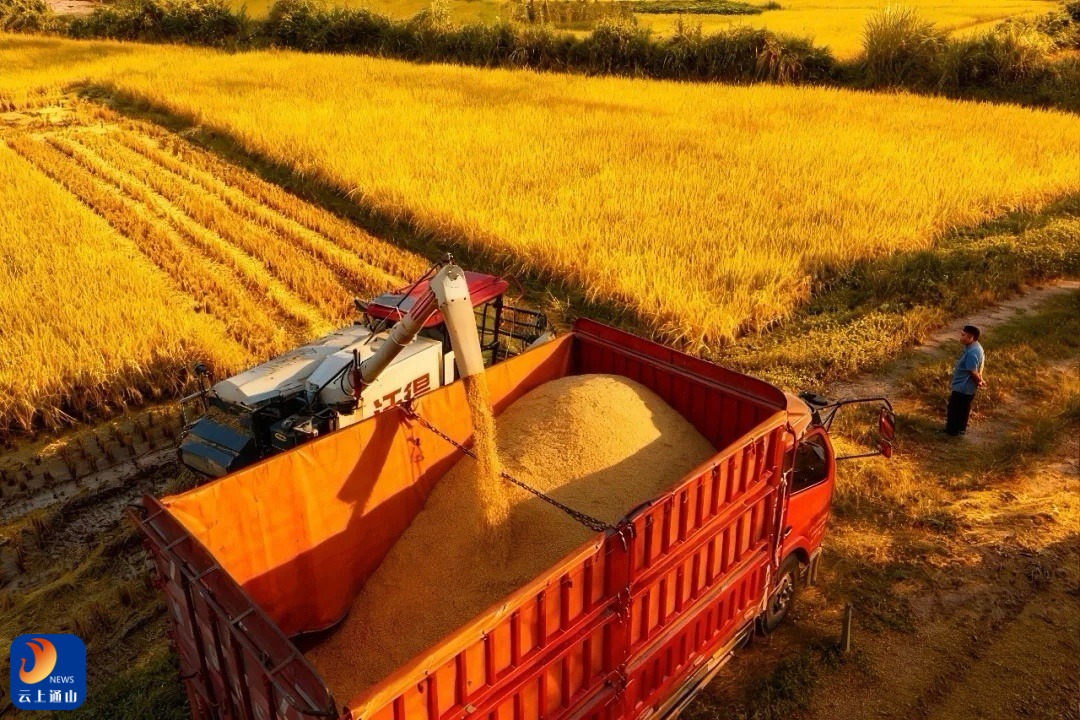 云上通山报道:(全媒体记者 程思 张洁 通讯员 陈雄晖)金秋九月,在通山县燕厦乡马桥村的广袤田野上,连片的水稻迎来丰收。农机轰鸣,人影忙碌,稻穗低垂,空气中弥漫着清新的稻香,一幅丰收画卷正徐徐展开。