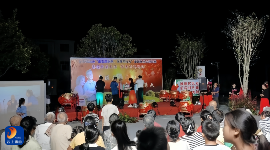 随后,活动移至石木地广场举行文艺晚会。晚6时30分,广场中央舞台灯光亮起,主持人宣布晚会正式开始。在歌曲《今天是你的生日》的旋律中,9位老人缓步上台。主持人逐一介绍老人姓名后,村干部们为每位老人佩戴象征温暖与祝福的红围巾,并献上鲜花。一位老人接过鲜花时动情地说:“村里年年都记挂着我们,这围巾戴在身上,暖在心里。”