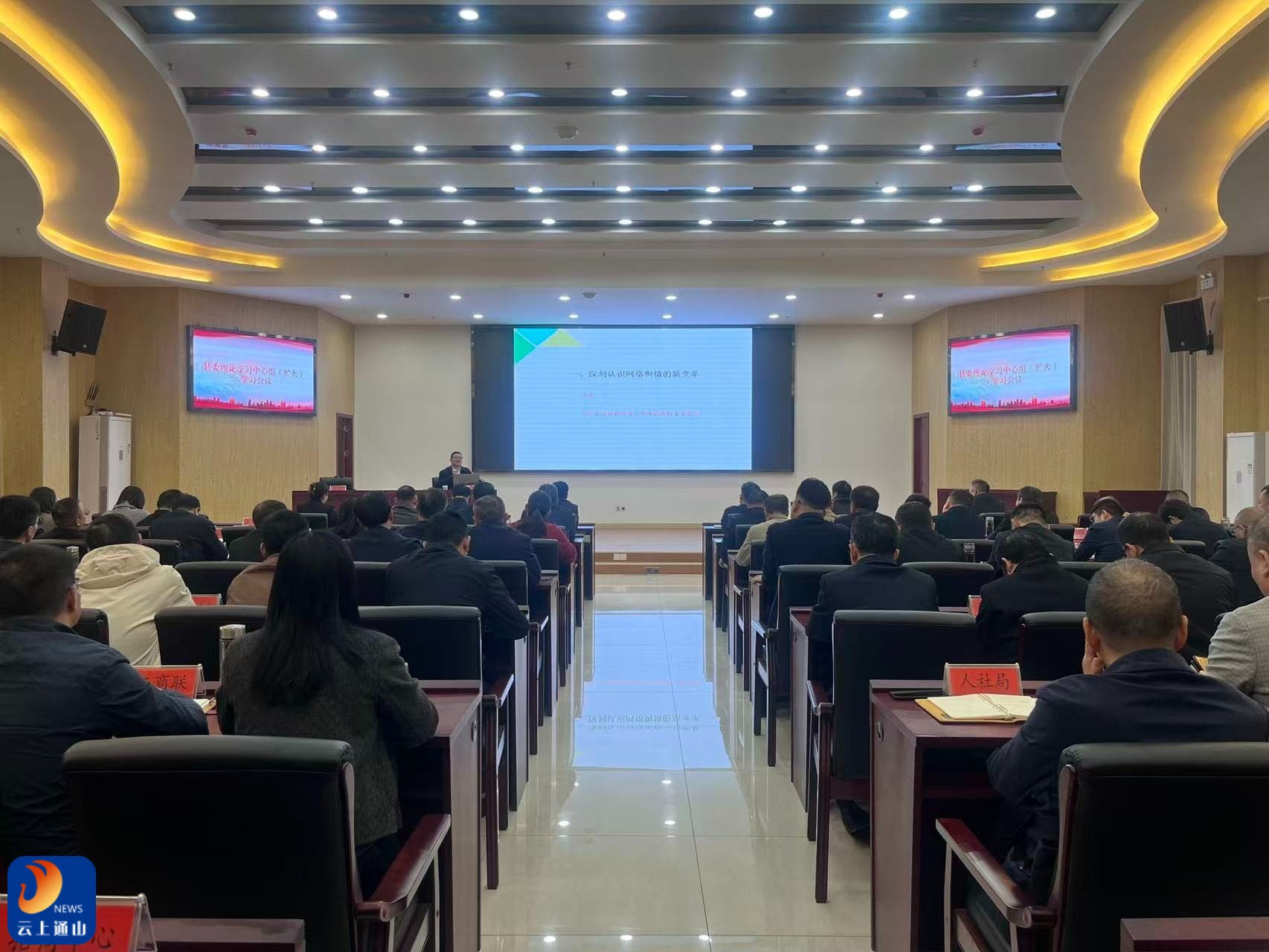 云上通山报道:(全媒体记者 徐涵)10月21日下午,为深入学习贯彻习近平总书记关于网络强国的重要思想,全面提升领导干部互联网思维和走好网上群众路线,县委理论学习中心组(扩大)学习会议举行。县委副书记、县经济开发区党工委书记廖旦主持会议。县人大常委会主任方家忠,县政协主席杨烨,县委常委石聪、徐丽华、郑佳、程景家参加会议。